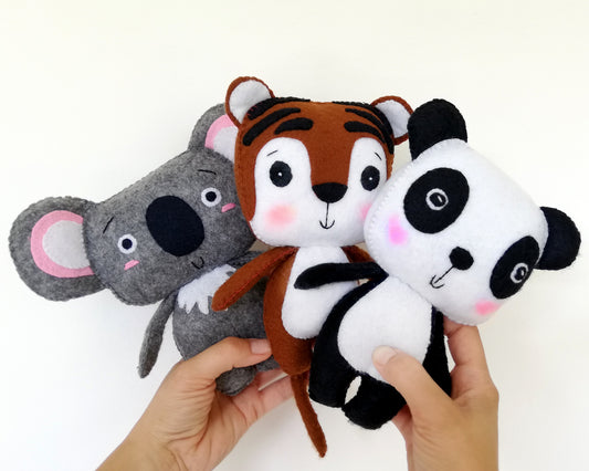 Colorful, strong, and easy to use, felt is the perfect fabric to make this collection of charming stuffed animals which are just the right size for your child to bring in their backpack or stuff in their pocket - so they will always have a fun friend to play with.