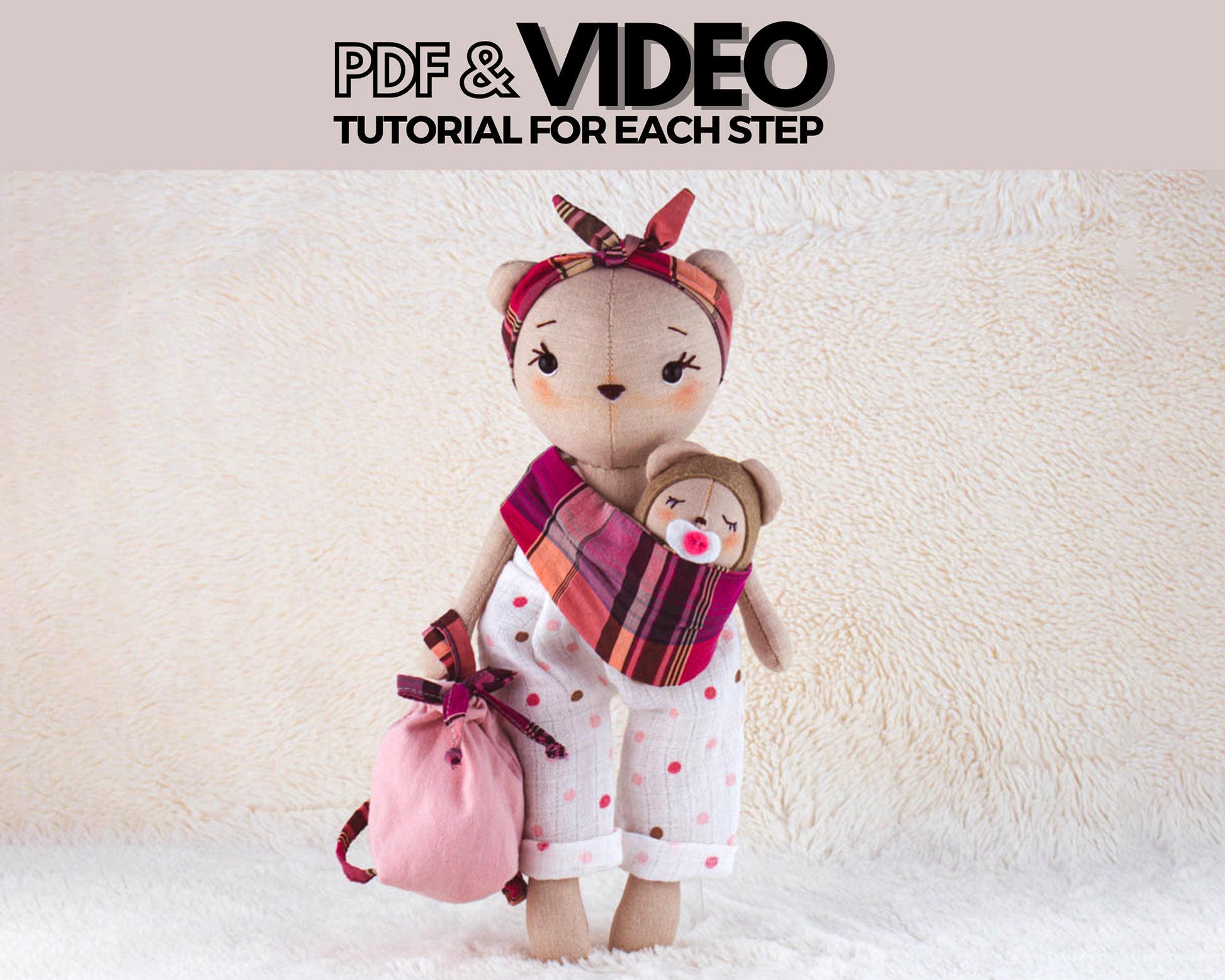 - Easy to follow step by step instructions and pattern pieces to make your own soft toy dolls Bear Mom and Baby with jumpsuit, backpack, headband and sling carrier;