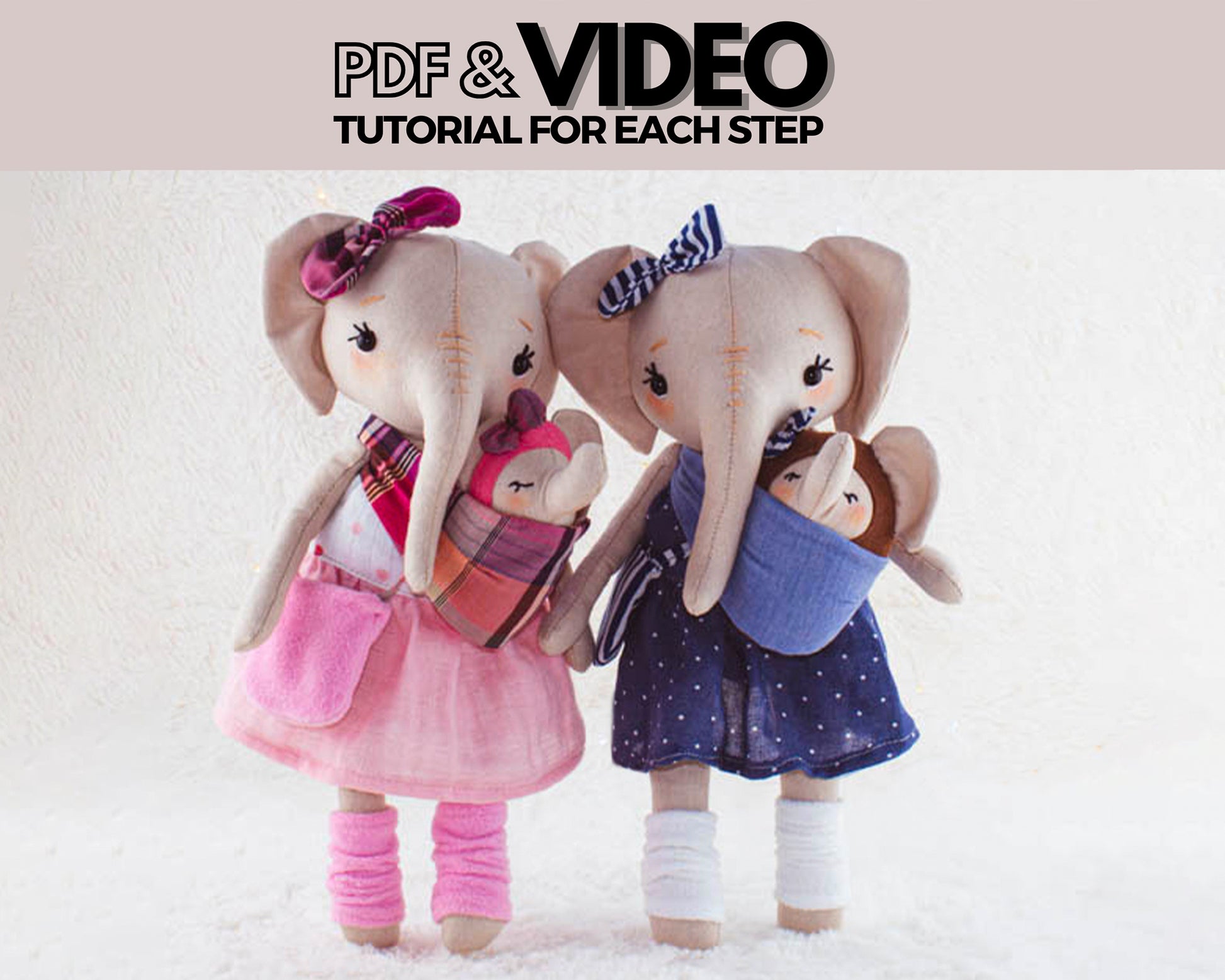- Easy to follow step by step instructions and pattern pieces to make your own rag doll Elephant mom and baby with the dress, head bow, shoes, handbag, leggings and sling carrier;