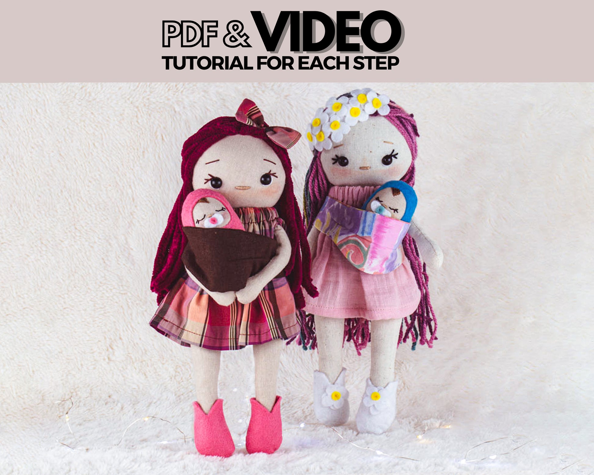 A precious rag doll Mom and Baby pdf sewing pattern and tutorial to sew yourself, as a gift for a child, or to treat your own children's hearts. This cloth doll Mom with a Baby is perfect for gifting toddlers or older kids in light of a new baby entering the family. This keepsake soft doll set is a wonderful way to help them learn about and be involved through interactive play.